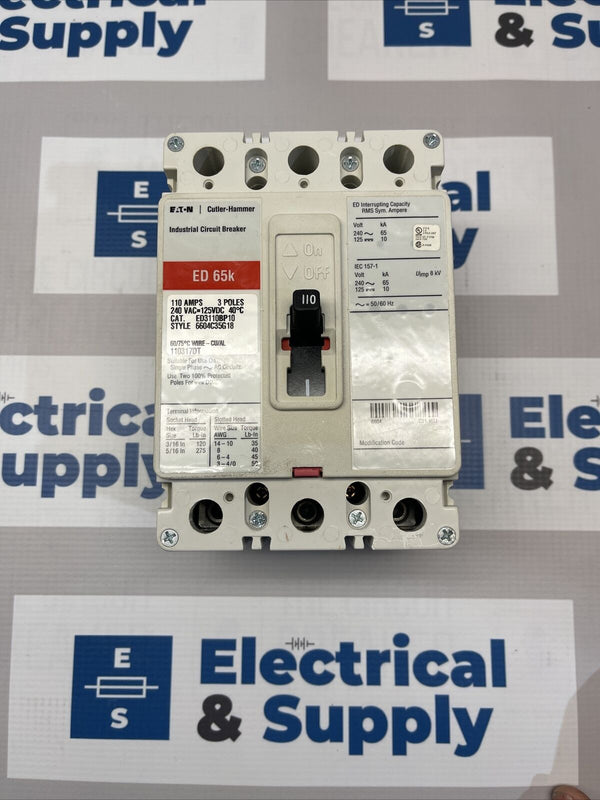 ED3110BP10 | Cutler-Hammer | 110 Amp | 240 Volt | 3 Pole | ED65k Circuit Breaker