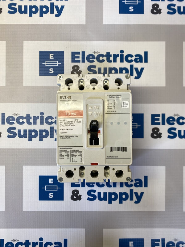 Eaton | FD3040 | 40 Amp | 600 Volt | 3 Pole | New Surplus Circuit Breaker