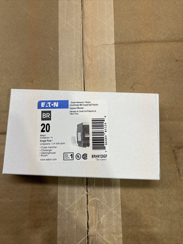 Eaton Cutler Hammer BRHN120GF 22k Aic Ground Fault 1p 20 Amp Breaker. Condition is New. Shipped with UPS Ground.
