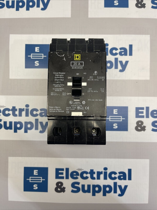 EDB34020 SQUARE D EDB 3 POLE 20 AMP 480/277 V CIRCUIT BREAKERS Recon.