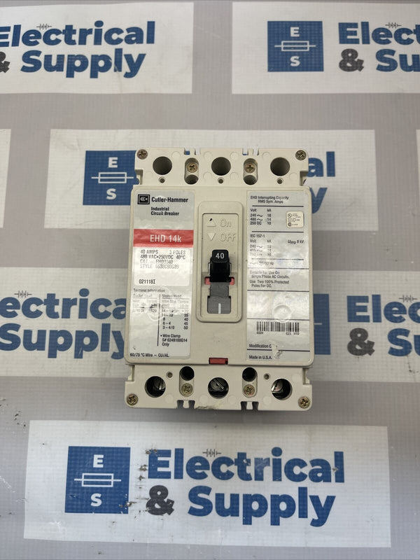 EHD3040 CUTLER HAMMER 3 POLE 40AMP 480V CIRCUIT BREAKER NEW Pull Out Flaw.