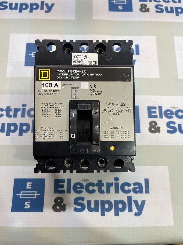 FHL361001021 | Square D | 100 Amp | 600 Volt | 3 Pole | Reconditioned Circuit Breaker Shunt Trip