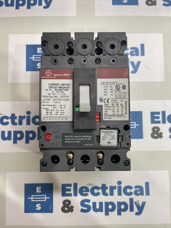 General Electric | SELA36AT0030 | 60 Amp | 600 VAC | 3 Pole | Spectra Circuit Breaker | New Pull Out 40 Amp Trip