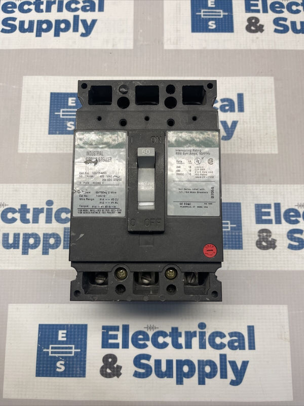 GE TED134050 3 POLE 50AMP 480V TED BREAKER SURPLUS with Hardware ASPTQ3P.