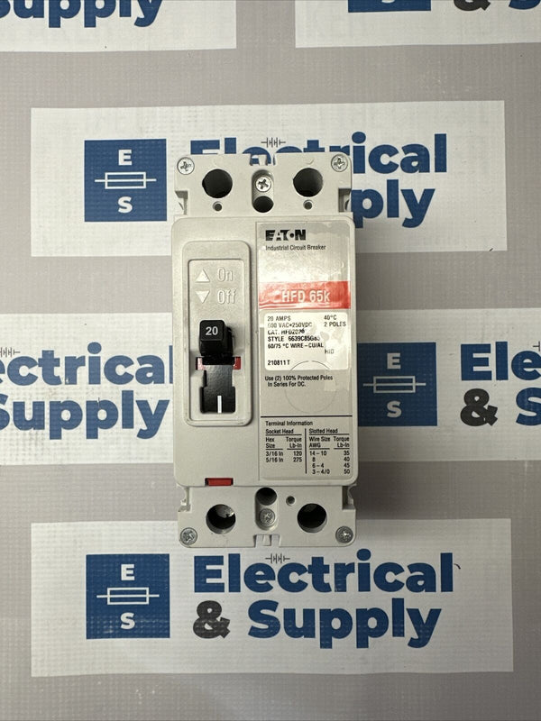 HFD2020 | Cutler-Hammer, Eaton, Westinghouse | 20 Amp | 600 Volt | 2 Pole | Series C HFD Circuit Breaker