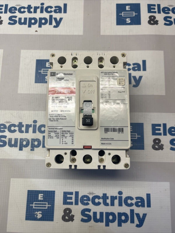 HFD3030L CUTLER HAMMER SER. C 600VAC 30A New Surplus.