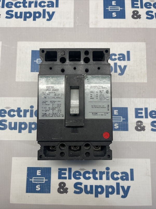 GE TED134125, 125 Amp, 480 Volt, 3 Pole,Circuit Breaker- Surplus.